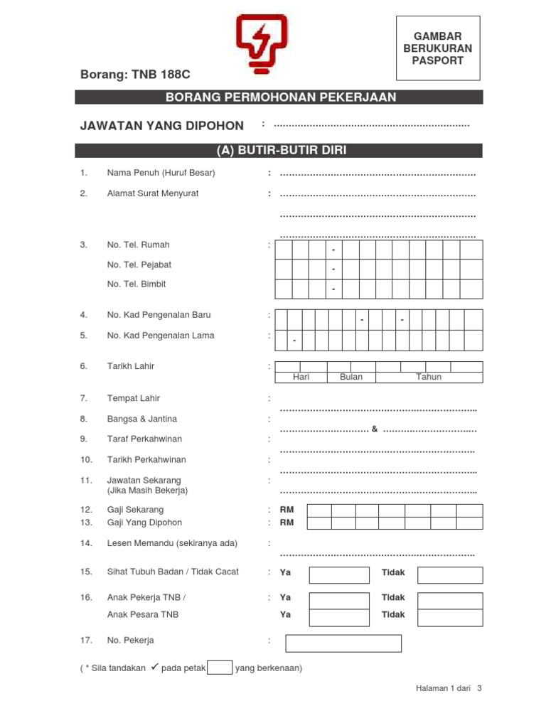 Borang Permohonan Pekerjaan Pdf